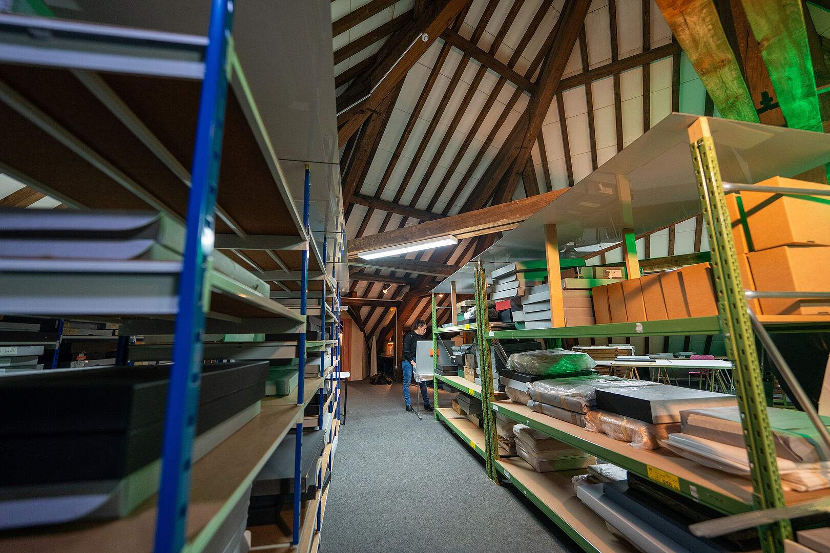 Léa Henry, assistante de conservation chargée de la régie des œuvres se rend dans l’une des réserves des musées de Belfort. De nombreuses œuvres milliers d’œuvres non exposées — tableaux, dessins, sculptures, objets du quotidien — patientent sur des grilles, des étagères ou dans des boites soigneusement étiquetées et conditionnées