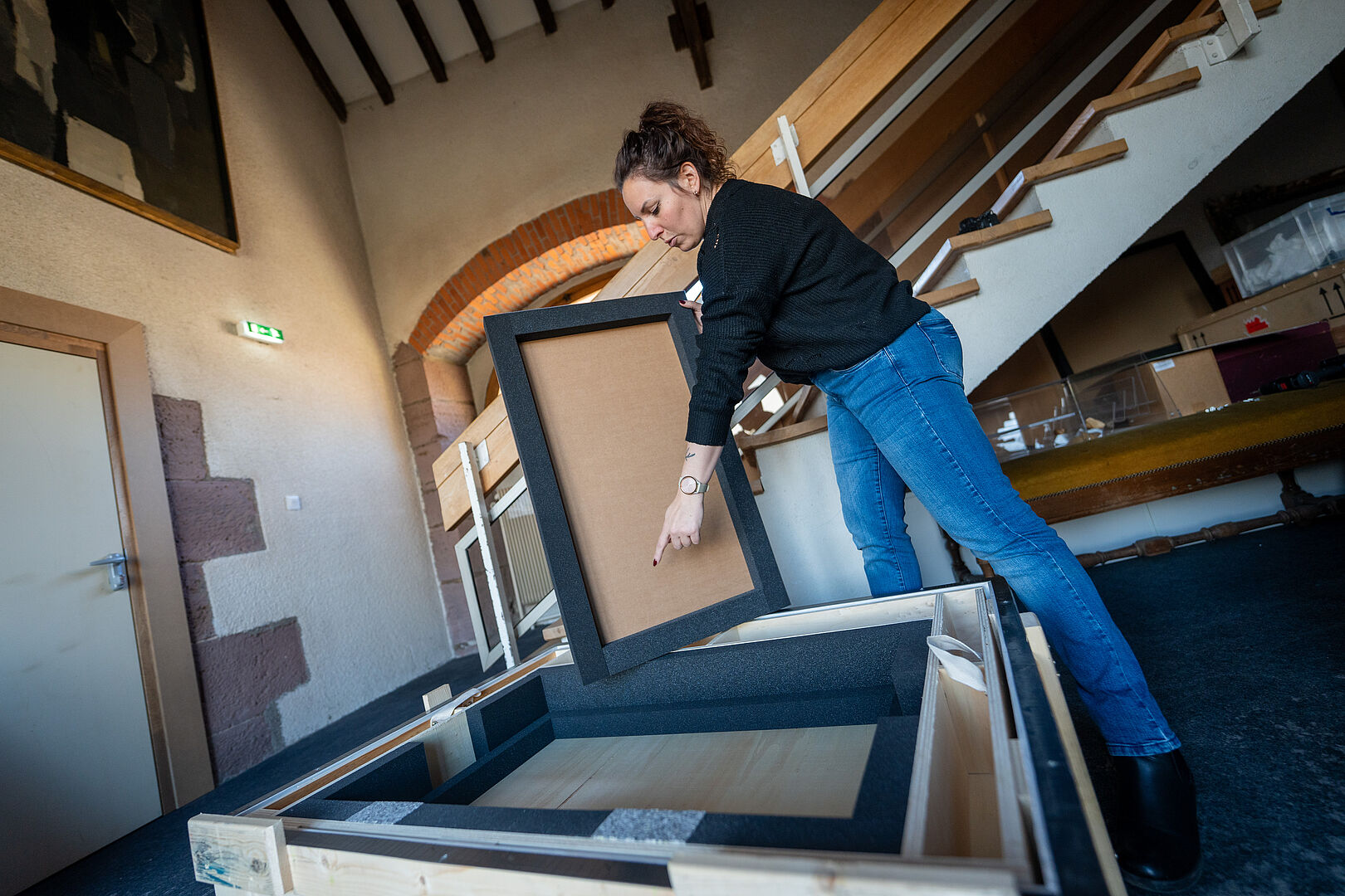 Passagère de prestige, cette œuvre quitte les collections des musées de Belfort pour un musée européen. Lea la range dans un coffre spécialise qui maintient la température et une hygrométrie constantes pour son voyage.